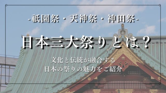 コラム日本三大祭りとは?文化と伝統が融合する日本の祭りの魅力をご紹介 日本三大祭りである「祇園祭・天神祭・神田祭」の起源や見どころについてわかりやすく解説!お祭りの由来や歴史、特徴などを紹介しています。地方の有名な三大祭りについても。 2024.05.25 2024.11.02コラム